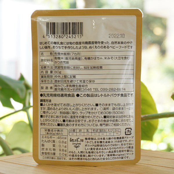 【原料名】有機米(鹿児島県産)、有機かぼちゃ、有機米みそ(大豆を含む)、かつお荒節