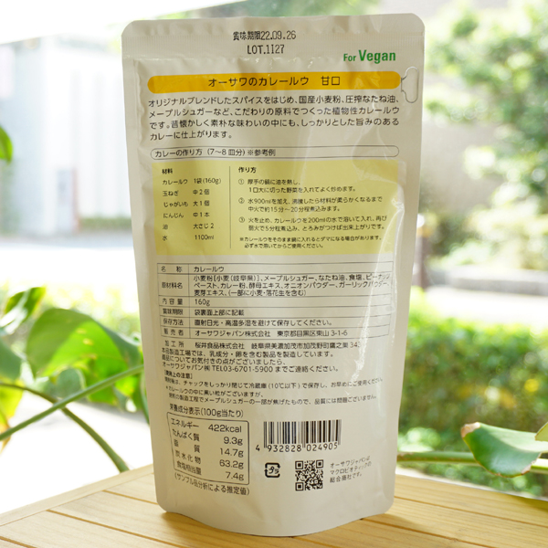 002490 オーサワのカレールウ(甘口)/160g(7〜8皿分)