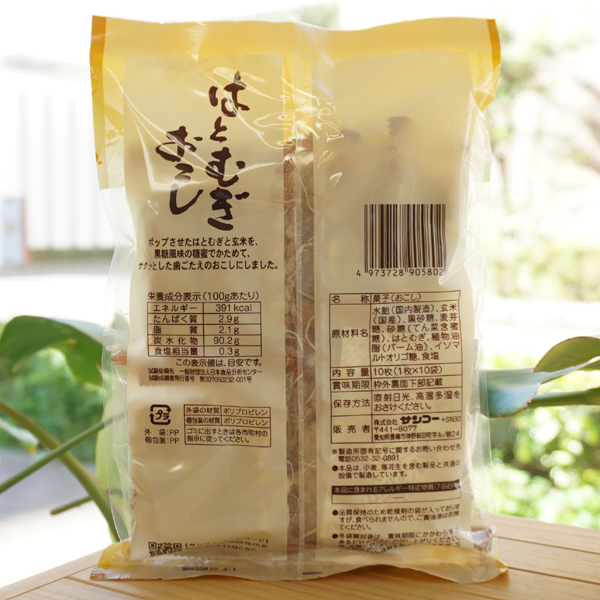 【原料名】水飴(国内製造)、玄米(国産)、黒砂糖、麦芽糖、砂糖(てんさい含蜜糖)、はとむぎ、植物油脂(パーム油)、イソマルトオリゴ糖、食塩