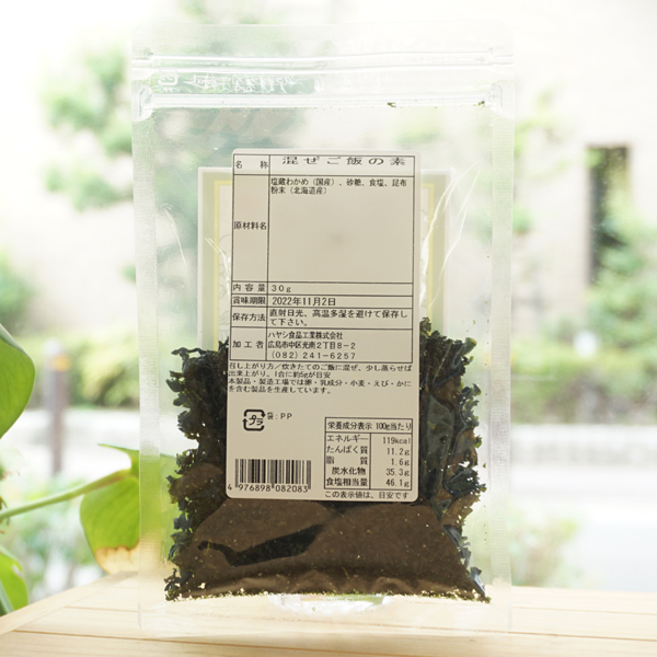 【原料名】わかめ(鳴門産)、洗双糖(鹿児島産)、食塩(瀬戸のあらじお)、コンブ粉末(北海道産)