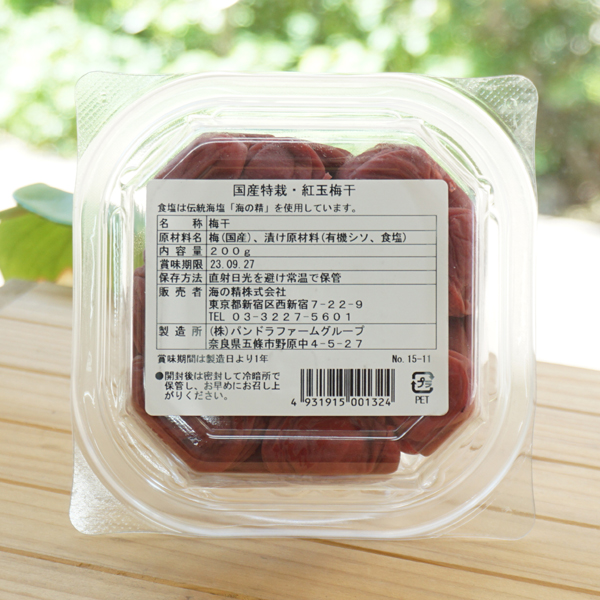 【原料名】特別栽培梅(奈良・和歌山・三重産)、有機紫蘇(奈良・和歌山産)、食塩(海の精)