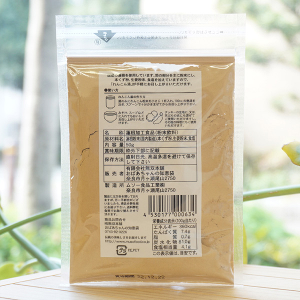 【原料名】蓮根粉末、本くず粉、生姜粉末、食塩