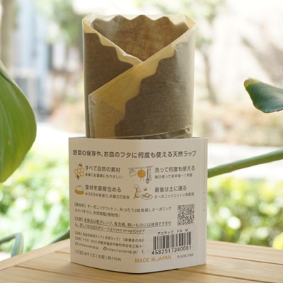 acowrap(アコラップ)といって、オーガニックコットンと岐阜県で採取したミツロウ、オーガニックホホバオイル、天然樹脂の4つの原料で作っている。