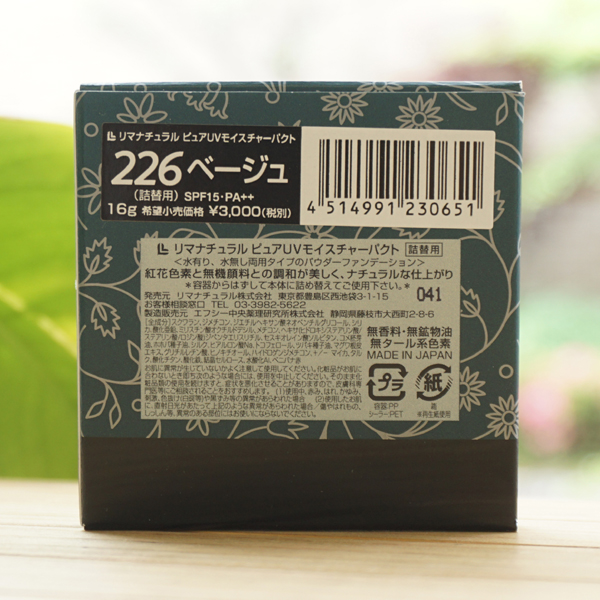 ピュアUVモイスチャーパクト レフィルL226(ベージュ)/16g【リマナチュラル】2 ピュアUVモイスチャーパクト レフィルL226(ベージュ)/16g【リマナチュラル】3