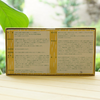 ■くすの木から抽出した芳香作用のある白精油を原料に、着色剤や香料・燃焼剤等の化学合成添加物を使用せずに作った刺激の少ないお線香です。
