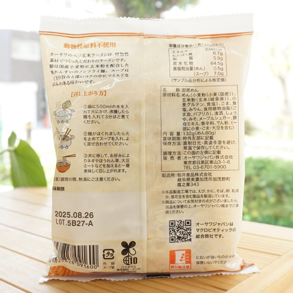 009160 ごまの旨みと深いコク マイルドな辛み オーサワのべジ玄米ラーメン(担担麺)/132g for Vegan