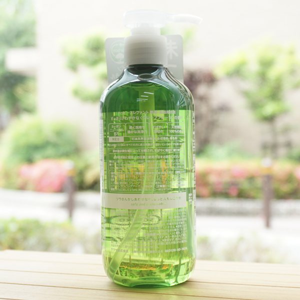【原料名】界面活性剤(11%、アルキルポリグリコシド、アルキルエーテル硫酸エステルナトリウム、ソホロースリピッド)、エタノール(安定剤)、クエン酸塩(安定剤)、グレープフルーツ油(香料)、クエン酸(pH調整剤)、ヒドロキシプロピルグアーガム(増粘剤)