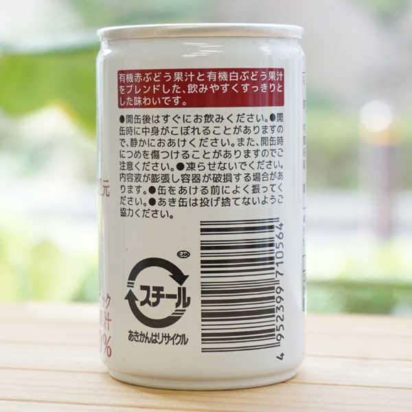 【取扱説明】有機赤ぶどう果汁と有機白ぶどう果汁をブレンドした、香りよく、すっきりとした甘みのある有機ぶどうジュースです。白ぶどう果汁をブレンドすることで赤ぶどう果汁の渋みを抑えて、飲みやすい味わいに仕上げています。お子様にも美味しくお飲みいただけます。