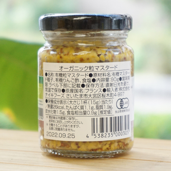 【原料名】有機マスタード種子(カナダ・フランス産)、有機りんご酢、食塩