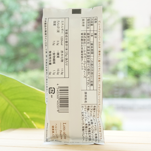 【原料名】アーモンド・くるみ(アメリカ産)、パンプキンシード(中国産)、レーズン(アメリカ産)、ココナッツシュガー(インドネシア産)、米飴、有機玄米甘酒、ドライアップル(スペイン産)、ドライクランベリー(クランベリー、きび砂糖、ひまわり油)、玄米フレーク、カカオニブス(スリランカ産)、ココナッツフレーク(フィリピン産)、カカオマス(ガーナ産)、ココアパウダー(オランダ産)