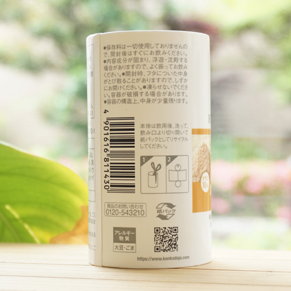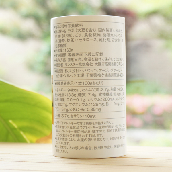 【原料名】豆乳、米ぬか、(国産)、 きび糖(鹿児島・沖縄・香川県産)、ごま(パラグアイ・グァテマラ・アメリカ産他),食物繊維、海藻カルシウム、茶(緑茶、抹茶)/セルロース、乳化剤、安定剤(増粘多糖類)
