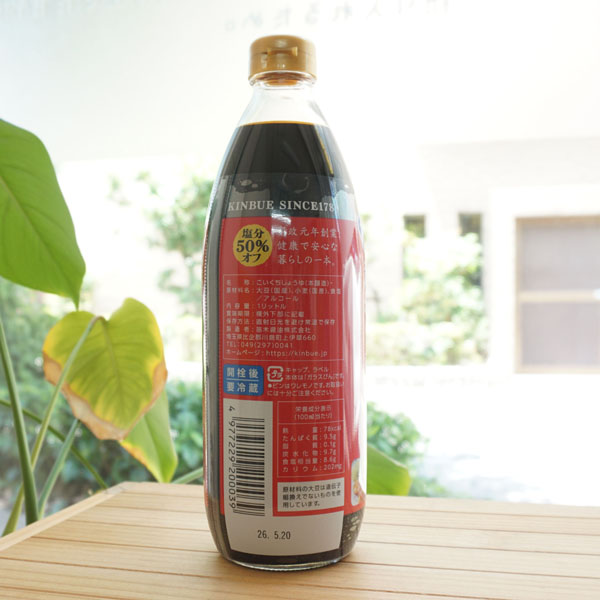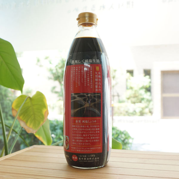 ■創業200年の伝統的手法により、丸大豆、小麦、天日塩のみを原料とし、豊かな自然の中、大きな杉桶でゆっくり醗酵・熟成させた本醸造醤油から独自の方法により旨味成分はそのままで、食塩のみを50%カットした風味豊かな醤油です。