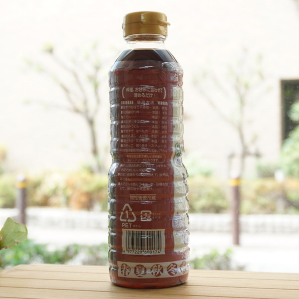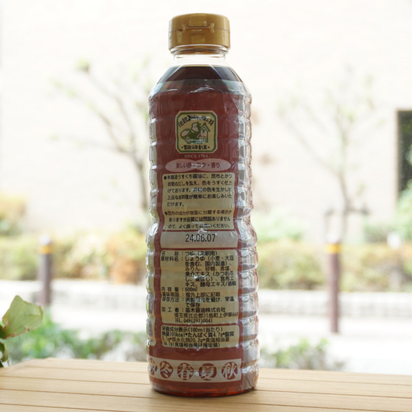 【原料名】しょうゆ(小麦・大豆を含む、国内製造)、みりん、砂糖、食塩、魚介エキス(かつおぶし、煮ぼし)、昆布エキス、酵母エキス/酒精