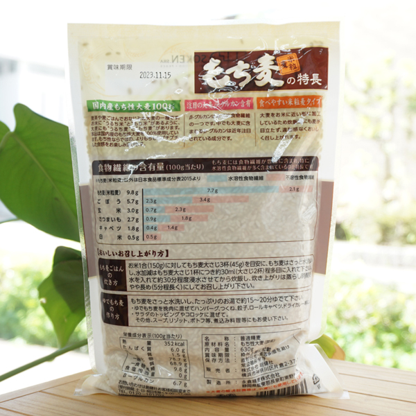 国内産もち性大麦100% 大麦β-グルカン含有 食物繊維たっぷり(白米の19倍)