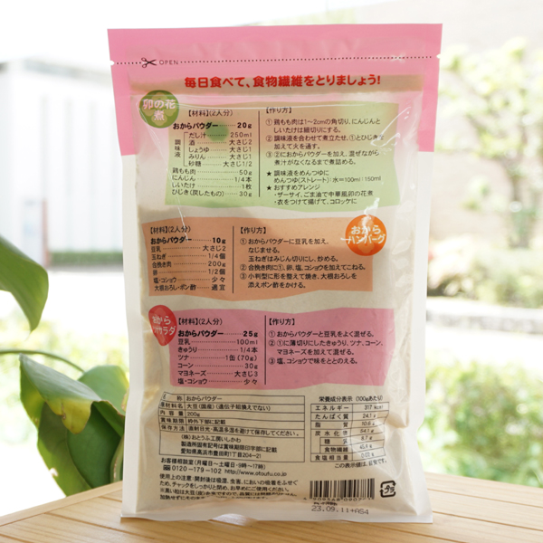 ■お豆腐屋さんのおからを乾燥させて、パウダー状に仕上げました。