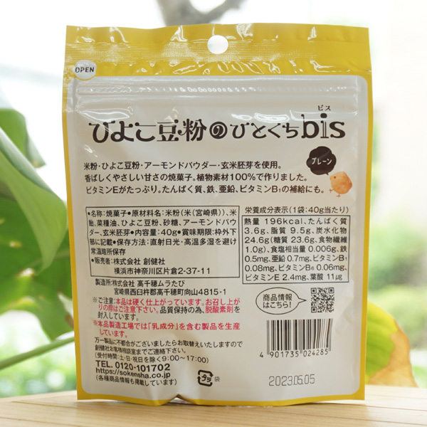 ひよこ豆粉のひとくちbis(プレーン)/40g【創健社】1