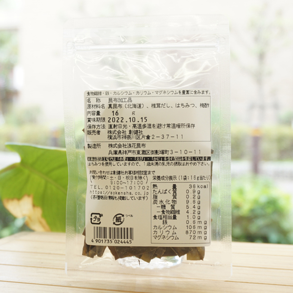 【原料名】真昆布(北海道)、椎茸だし、はちみつ、梅酢