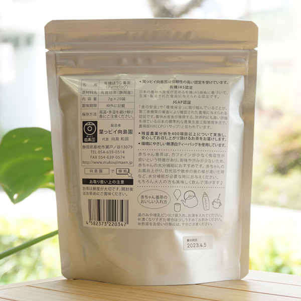 s80077 有機栽培茶 赤ちゃん番茶/2g×20袋【葉っピイ向島園】 三年番茶ティーバック(ほうじ茶)