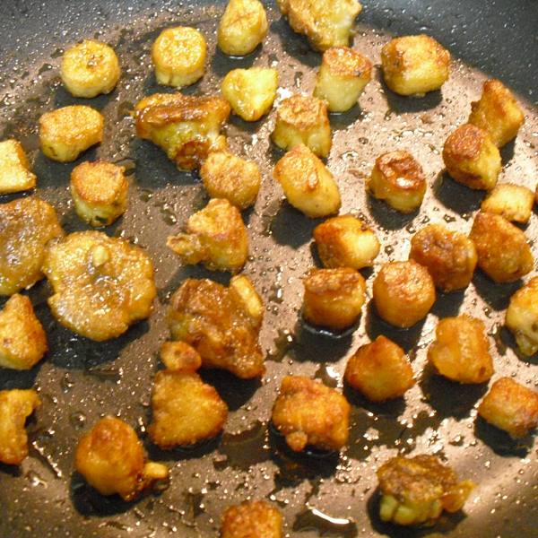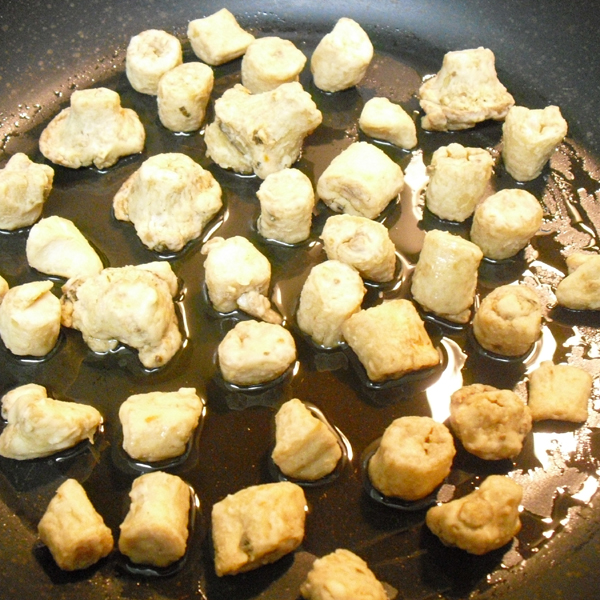5.転がしながら表面が カリッと香ばしくなるまで 約3分程揚げ焼きする。