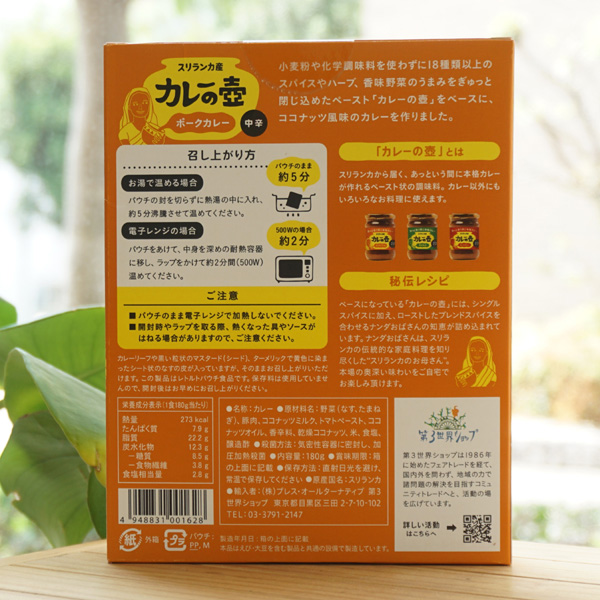 スリランカ産 カレーの壺 ポークカレー(中辛)/180g(1人前)【第3世界ショップ】2