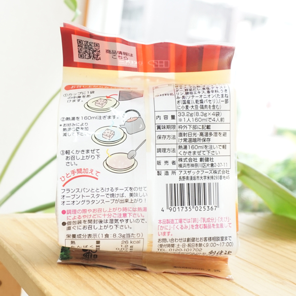 s122844 オニオンスープ(フリーズドライ)/8.3g×4袋【創健社】 じっくりソテーした国産玉ねぎを使用
