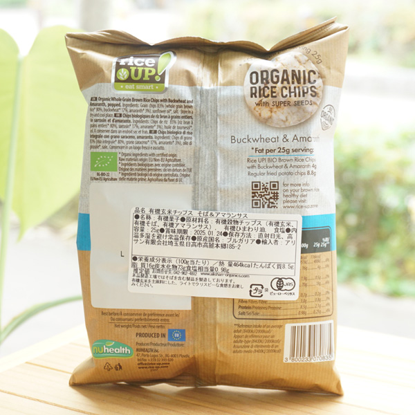 【原料名】有機穀物チップス(有機玄米、有機そば、有機アマランサス)、有機ひまわり油、食塩