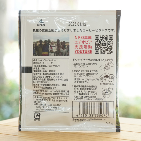 アンドロメダエチオピアコーヒー ヤルガッチャフェ(ドリップパック)/10g【NPO高麗】2