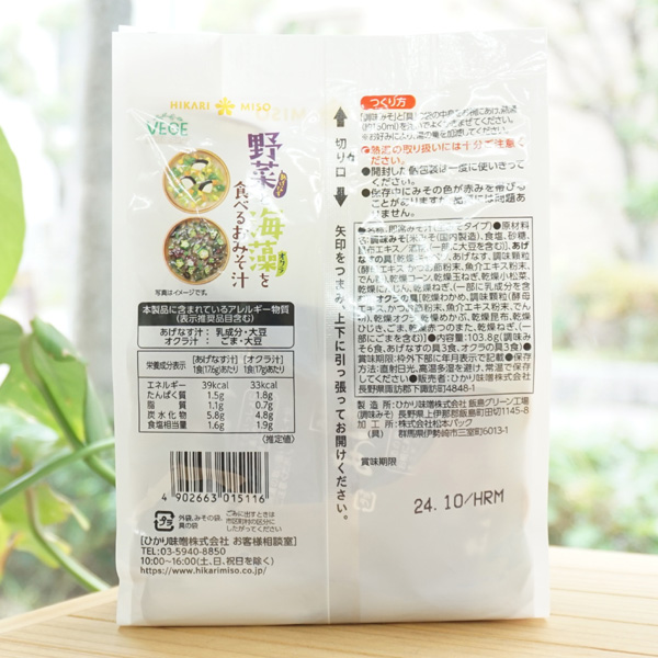 12-110 VEGE MISO SOUP 野菜と海藻を食べるおみそ汁/6食入【ひかり味噌】
