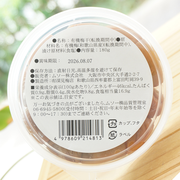 【原料名】有機梅(和歌山県産)(転換期間中)、漬け原材料(食塩)