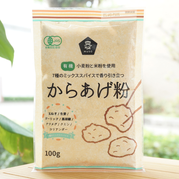 20927 有機 小麦粉と米粉を使用 からあげ粉/100g【ムソー】 7種類のミックススパイスで香り引き立つ