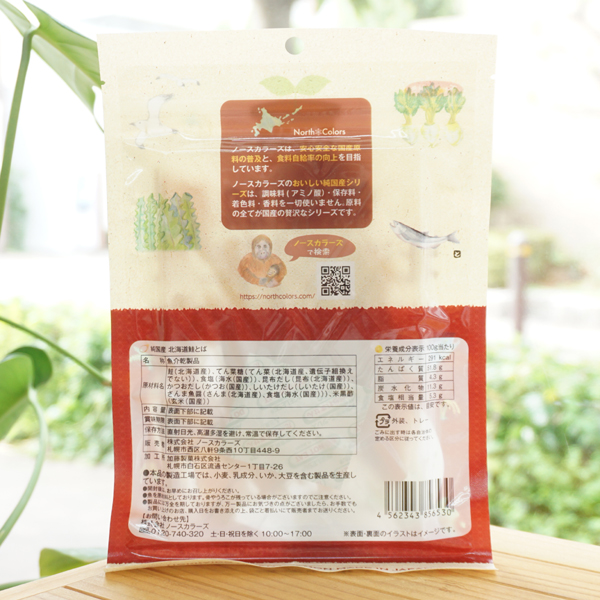 【原料名】鮭(北海道産)、てん菜糖(てん菜(北海道産・遺伝子組み換えでない))、食塩(国内製造)、昆布だし(昆布(北海道産))、かつおだし(かつお(国産))、しいたけだし(しいたけ(国産))、さんま魚醤(さんま(北海道産)、食塩(国内製造)、米麹(米(国内製造))、米黒酢(玄米(国産))