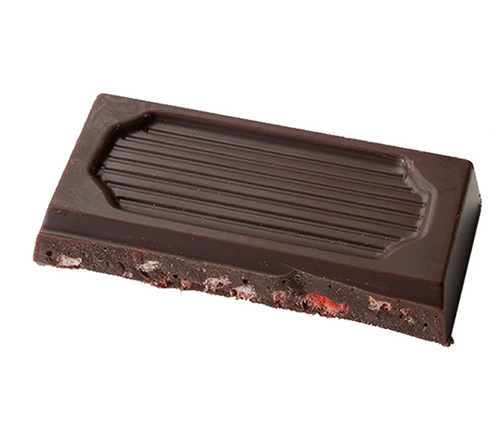 マール・ド・シャンパーニュを練り込んだビターチョコに、甘酸っぱい有機ストロベリーのアクセント。