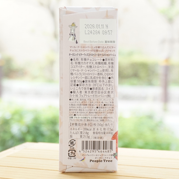 People Tree ビター ウィズ ストロベリー&マール ド シャンパーニュ/40g【フェアトレードカンパニー】  Bitter with Strawberry&Marc de Champagne1