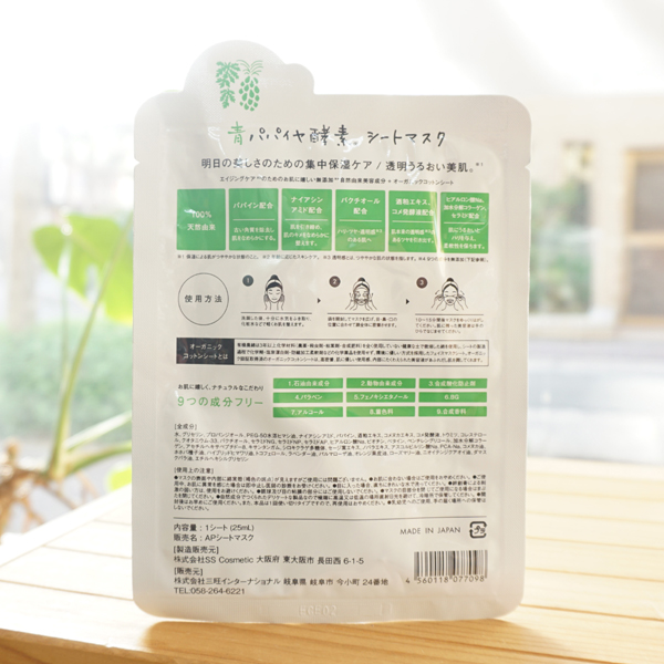 s170069 青パパイヤ酵素シートマスク/1シート(25ml) 【三旺インターナショナル】