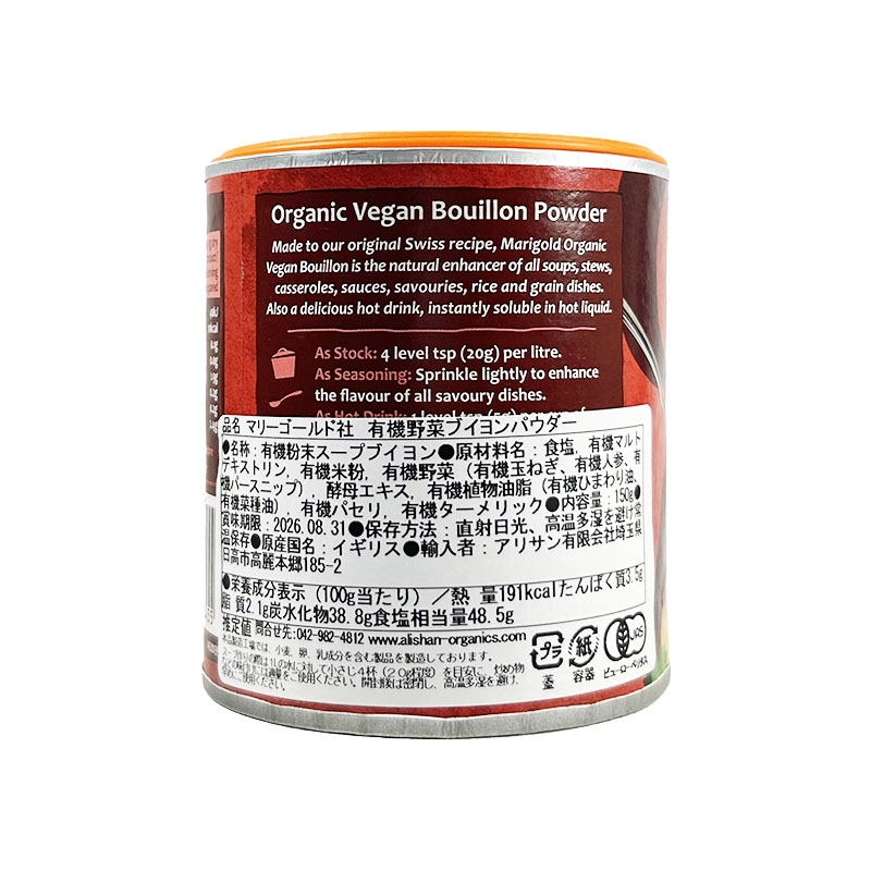 a-k423 有機野菜ブイヨンパウダー/150g【マリーゴールド社】