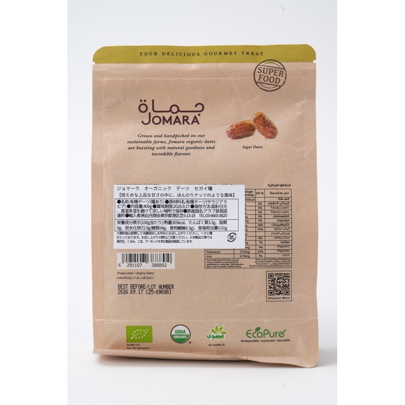 ジョマーラ オーガニックデーツ セガイ種 /400g【出光商会】2