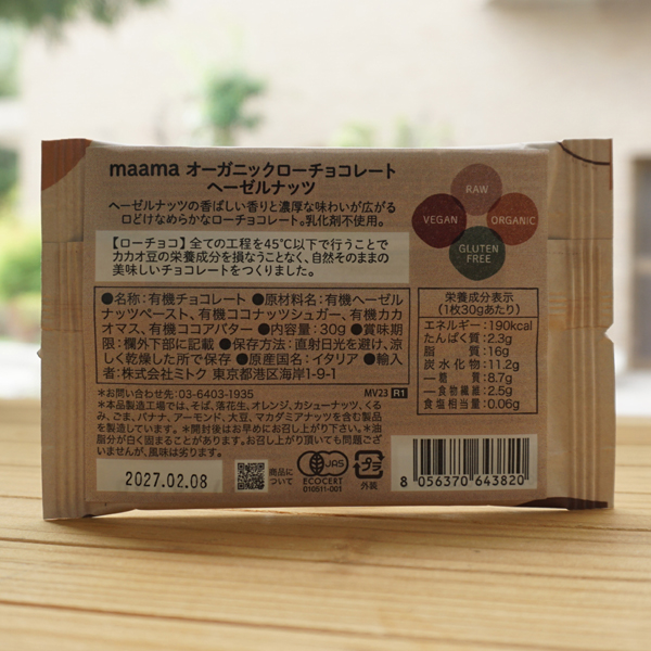 オーガニックローチョコレート ヘーゼルナッツ/30g【マーマ】2