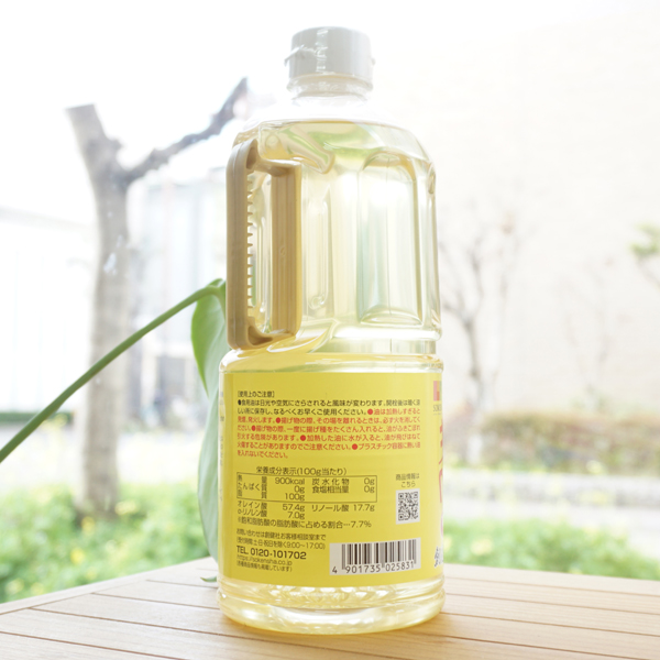 ■圧搾搾り・なたね油と高オレイン酸タイプ・圧搾しぼりの有機べに花油を8:2でミックスしたフレッシュでまろやかなサラダ油です。