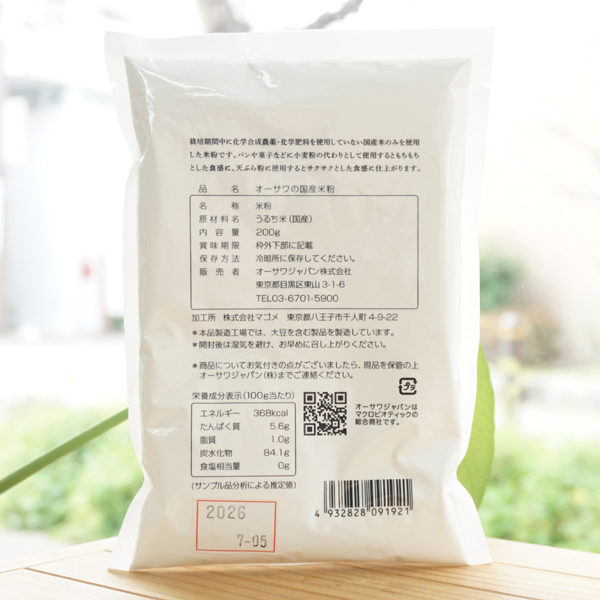 009192 オーサワの国産米粉/200g【オーサワ1月新商品】