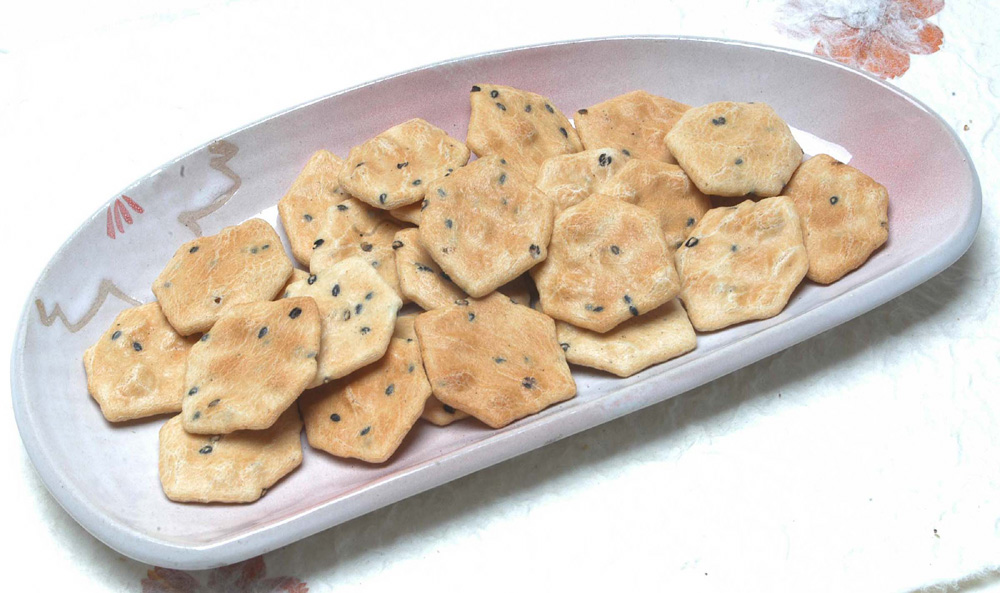 玄米・ごま・塩のみで仕上げた素焼きせんべい。