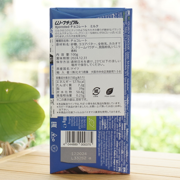 33445 bjornsted オーガニックチョコレート(ミルク)/100g【むそう】