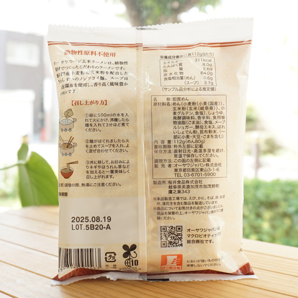 009156 本醸造醤油の香り引き立つ オーサワのベジ玄米ラーメン(しょうゆ)/112g for Vegan