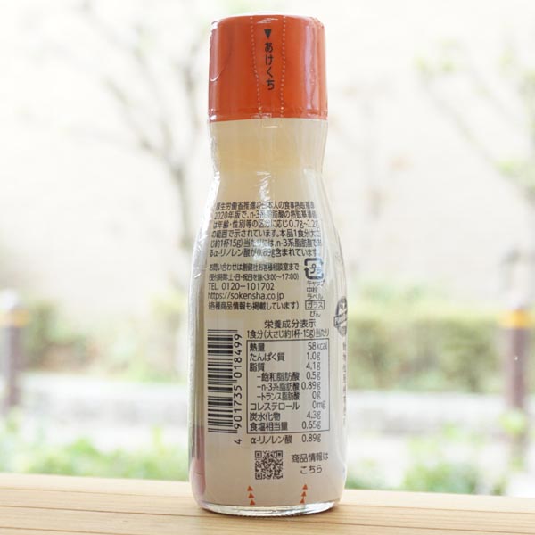■創健社の「えごま一番」を使用し、まろやかでコクのある練り胡麻をベースにした風味豊かな胡麻ドレッシング。オメガ3(n-3系)脂肪酸がおいしく手軽に摂れます。